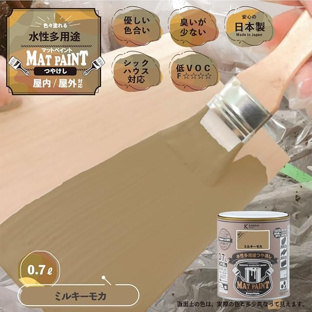 商品名:カンペハピオ ペンキ 塗料 水性 つやけし 多用途 マットペイント ミルキーモカ 0.7L 日本製 00347651931007
