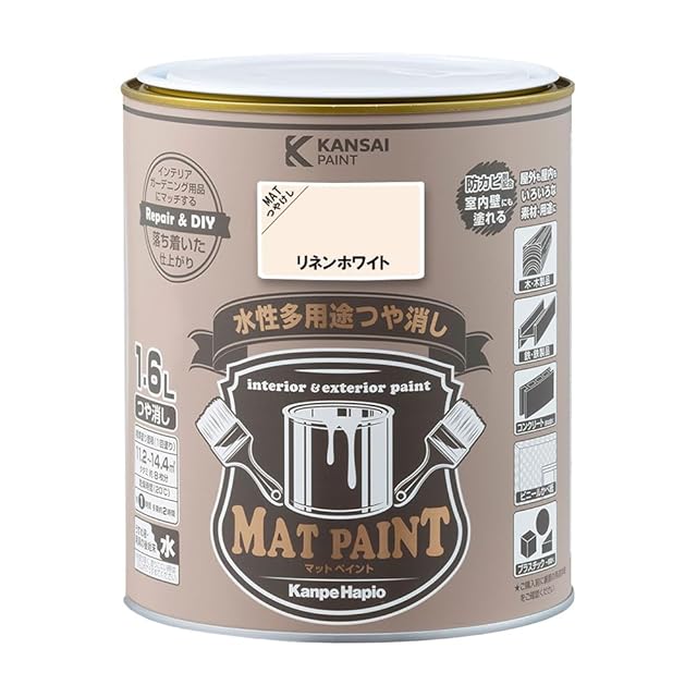 カンペハピオ ペンキ 塗料 水性 つやけし 多用途 マットペイント リネンホワイト 1.6L 日本製 00347652401016