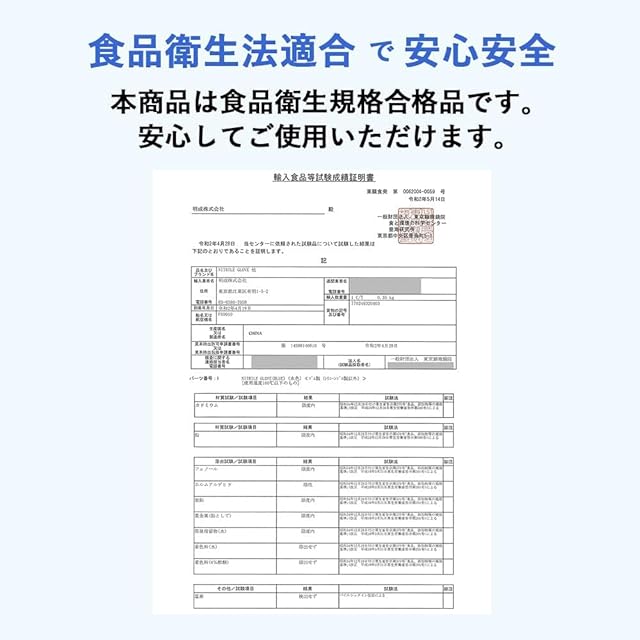 【食品衛生法適合】ニトリル手袋 パウダーフリー。食品衛生法に適合しています(食品試験成績証明済:令和4年8月26日)