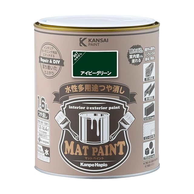 カンペハピオ ペンキ 塗料 水性 つやけし 多用途 マットペイント アイビーグリーン 1.6L 日本製 00347651971016