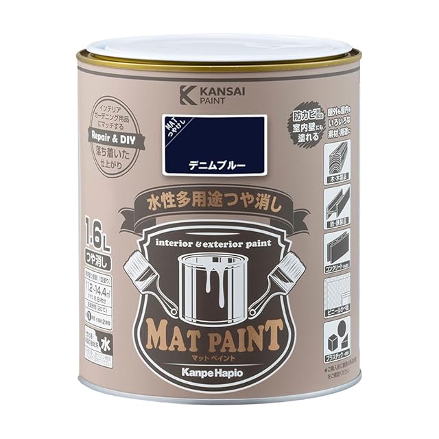 商品名:カンペハピオ ペンキ 塗料 水性 つやけし 多用途 マットペイント デニムブルー 1.6L 日本製 00347651981016