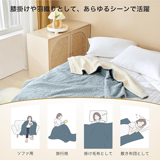 【大判サイズ188×130cm・掛け敷き兼用で使い方自由自在】SNSで検索される「電気毛布 大判」「掛け敷き兼用」ワードをカバーした人気サイズ。ソファでのリラックスタイム、デスクワーク、車中泊、キャンプまで、1枚で幅広く使える万能電気ブランケット。掛け毛布としても敷き毛布としても使え、冬のさまざまなシーンで暖かさを提供します。