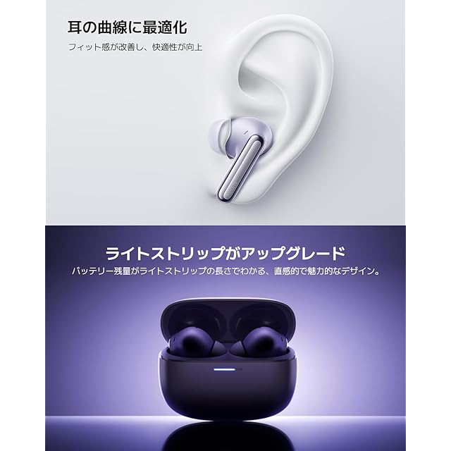 シャオミ(Xiaomi) ワイヤレスイヤホン Redmi Buds 6 Pro 55dBまでアクティブノイズキャンセリング 進化したトリプルドライバー LDAC対応 ハイレゾオーディオワイヤレス 最大36時間音楽再生 Google Fast Pair ラベンダーパープル