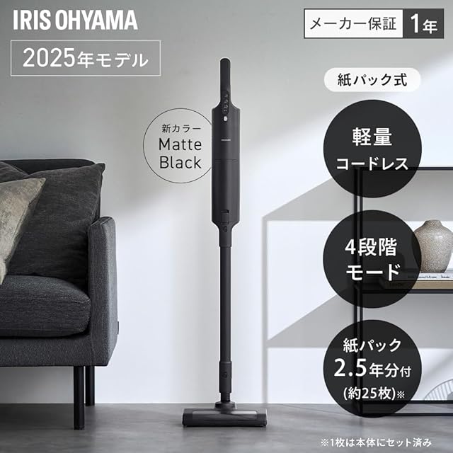 軽量コードレス・4段階モード・紙パック約2.5年分付(25枚)※1枚は本体にセット済み