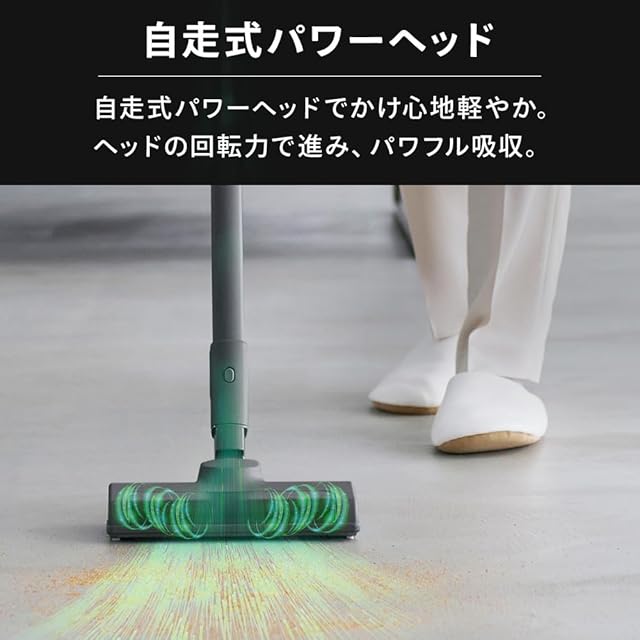 自走式パワーヘッド。自走式パワーヘッドでかけ心地軽やか。ヘッドの回転力で進み、パワフル吸収。