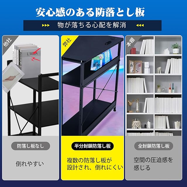 【物の落下を防ぐための仕切り板】市場に多くのL字デスクとは異なり、この製品には物の落下を防ぐ仕切り板が付いており、特に壊れやすい物を守ります。思わぬ落下から守られ、デスクを使うときの気分がより快適。