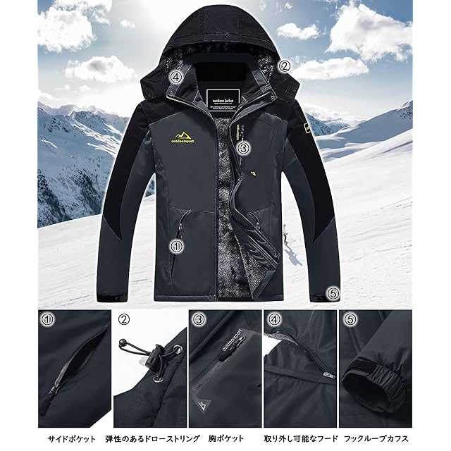 商品名:[TACVASEN] ウィンドシェルジャケット メンズ 防寒着 防水防風 フリース アノラック アウトドア 防寒ジャケット スキー 春秋用 灰黒 M