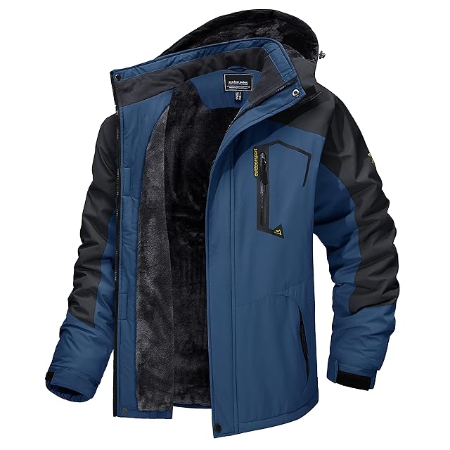 [TACVASEN] カジュアル 登山ウエア 裏ボア 防風 マウンテンパーカー 防水 大きいサイズ 登山服 ハイキング 帽子付 カウボーイブルー XL