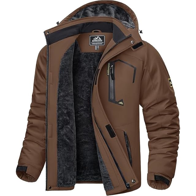 [KEFITEVD] バイクジャケット メンズ 冬用 マウンテンパーカー 防風 アウトドアウェア 暖かい 裏起毛 登山 釣り 作業着 防寒着 茶色 JP L