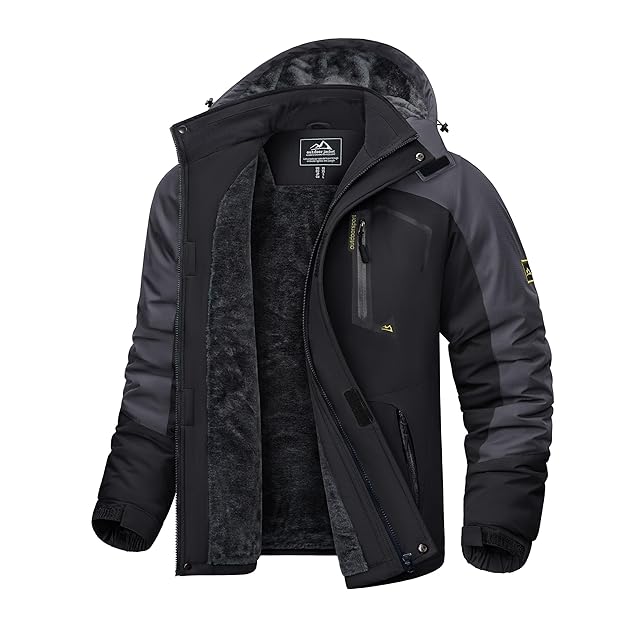 [KEFITEVD] アウター メンズ 冬 マウンテンパーカー 防寒 防風 バイクジャケット 裏起毛 アウトドアウェア 登山 キャンプ 釣り 冬服 黒+灰 JP XL