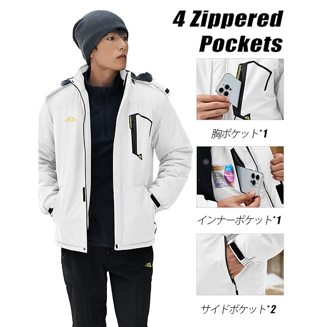 商品名:[KEFITEVD] アウター メンズ 冬 スキージャケット 裏ボア ジャンパー 防風 ウィンドブレーカー 撥水 マウンテンパーカー 防寒ジャケット スノーボードウエア 白 ホワイト JP 2XL