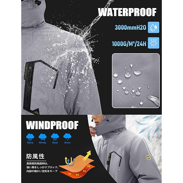 商品名:[KEFITEVD] ジャケット メンズ 冬 バイク防寒着 防風 マウンテンパーカー 裏ボア アウトドア 保温 防寒作業着 スキーウエア ライトグレー JP 2XL