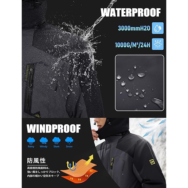 商品名:[KEFITEVD] 防寒アウター メンズ 冬用 マウンテンパーカー 防寒 バイクジャケット 防風 アウトドアウェア 保温 裏起毛ジャケット 登山 キャンプ 釣り 防寒着 灰+黒 JP 3XL