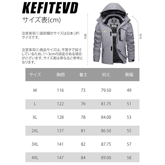 商品名:[KEFITEVD] ジャケット メンズ 冬 バイク防寒着 防風 マウンテンパーカー 裏ボア アウトドア 保温 防寒作業着 スキーウエア ライトグレー JP 3XL
