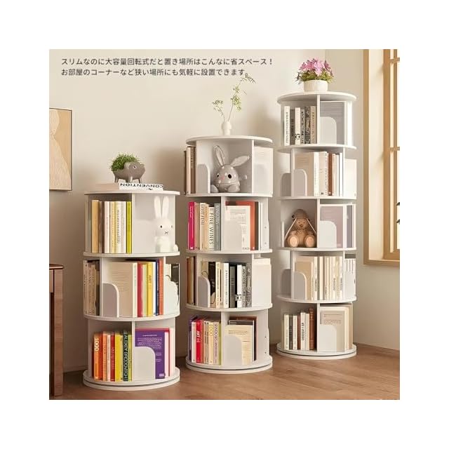 商品名:Yumcute 本棚 回転式本棚 4段 大容量 スリム コミックラック 絵本棚 漫画 収納 回転ラック ブックシェルフ 収納棚 CDラック DVDラック 天板に物が置ける(ホワイト 交互タイプ)