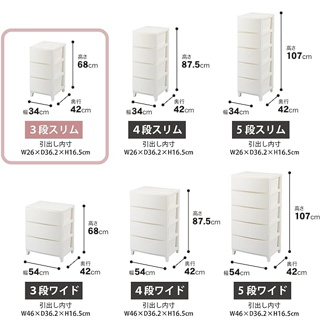 商品内容:奥行42cm x 幅34cm x 高さ68cm (引き出し数 3)
