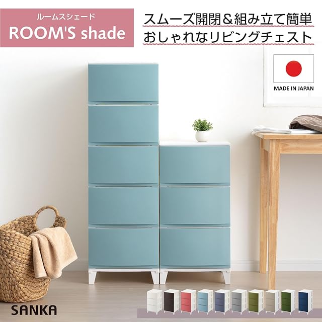 商品名:サンカ ルームス 収納 チェスト サンドブルー スリム 3段 (幅34×奥行42×高さ68cm) スルっと引き出せて スキッと締まる引き出し キズ付きにくいマット加工パネル 簡単組み立て おしゃれ 収納ケース 収納ボックス 日本製 衣装ケース タンス リビング クローゼット 洗面所ROOM'S shade RSD-S343SBL