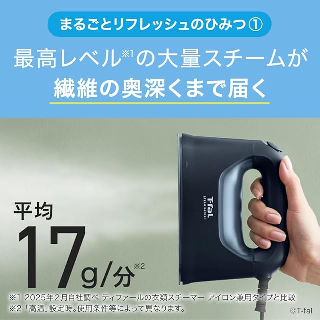【17g/分のパワフルスチーム】シワ伸ばしはもちろん、ウイルス除去や花粉低減も可能。