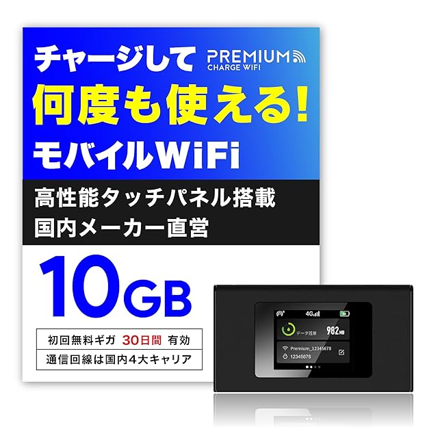 商品名:国内メーカー直営 [MR1] 日本10GB/30日付 ポケット WiFi 【プレミアムチャージWiFi】 ギガ割引クーポン毎月付与 端末買い切り 契約・クレカ不要 利用分だけ都度チャージ 海外利用可能