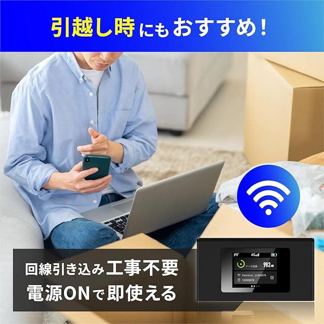 【契約・返却不要、端末買い切り型】買ってすぐに使える簡単モバイルWiFi端末。購入後、電源ONで開通して初回の有効期間30日(日本国内10GB)がスタートします。※物理SIM契約不要・SIMなしで使えます