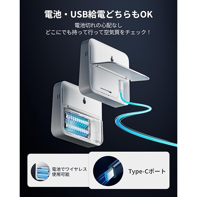 【2WAY給電】電池とType-C給電どちらもOK!Type-C給電ならば、バッテリー切れの心配不要でデータを1秒ごとに更新。電池ならワイヤレスでどこでも使えます。