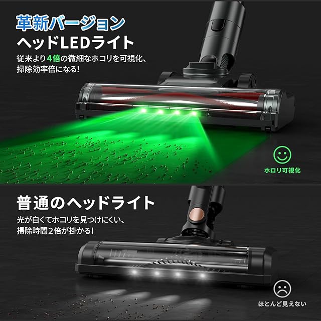【改良Ⅴ字型ブラシ・ローラーブラシヘッド付&伸縮式パイプ】市販のコードレス掃除機はほとんどⅤ字型ブラシのみつきますが、本製品は日本の住宅向けに、Ⅴ字型ブラシ以外、ローラーブラシヘッド付属。Ⅴ字型ブラシは長短の毛、大粒の物やカーペットの掃除に適しています。ローラーブラシヘッド付は広い面積の床の掃除に適用して、ベッド、キャビネット、その他のエリアの底ににしみ込んで、特に木の床と床タイルの区域に適して、優れたほこりの清潔な効果があります。それ以外、ブラシヘッドはローラー付きで、省力で毎日の掃除は楽々になりました。Airpher掃除機コードレスは伸縮可能パイプを採用しており、身長合わせてパイプ調整できます。パイプの部分は最長67センチに伸ばせます。