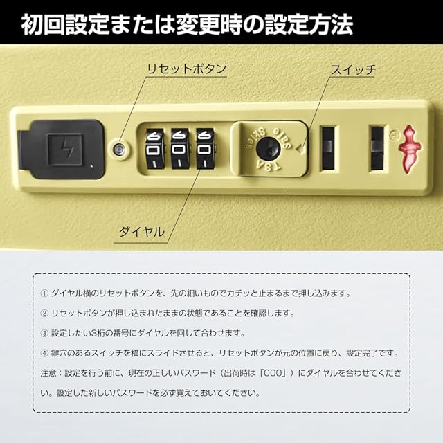 【高品質なボディ・安心のTSAロック】ABS樹脂は軽くて弾力性と割れに強く、PC(ポリカーボネート)樹脂は耐衝撃性・断熱材に優れる、両素材を混合した耐久性が高いハードタイプの高品質ボディを実現できる キャリーケース 。また、世界基準のTSAロック搭載しています。アメリカ空港(グアム・ハワイ・サイパン含む)では必需品です。ダイヤル式ロックなので鍵を無くす心配がないのも魅力です。
