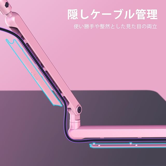 【ケーブル収納可能】隠されたケーブルカバーがマイクアームに内蔵し、配線整理はより便利になります。ケーブルをきちんと整えられ、作業スペースの整理整頓に役立ち、見た目もすっきりとしています。