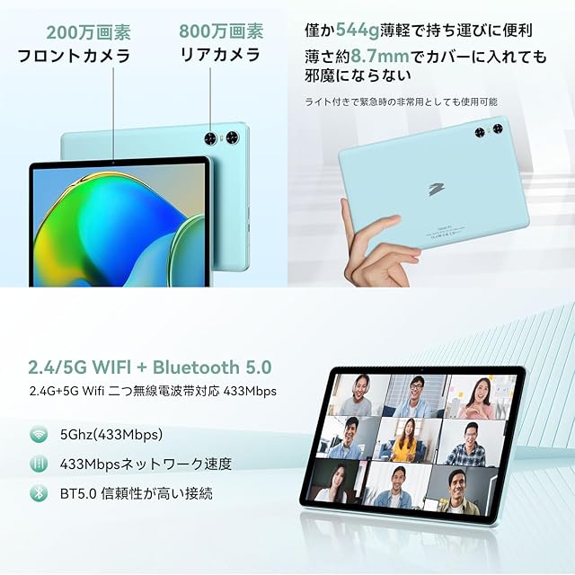【2.4G/5G WiFi+Bluetooth 5.0+6000mAh+USB-C充電+1年】 ◆2.4/5GHzの無線電波带域に対し、安定した通信と高速通信が可能、快適なオンライン体験を提供します。◆Bluetooth機能搭載の外部デバイスとワイヤレス接続が可能。外部音量コントロール、A2DPステレオヘッドホンに対応したBluetooth (5.0)、スピーカー、マイク、LEアクセサリーをサポート。◆最大6000mAhの大容量バッテリーを搭载。◆壊れにくいType-C端子による充電でたっぶりとタプレットを使用できます。3.5mmヘッドフォンジャックが搭載し、充電時や音楽鑑賞時にお互いに干渉することがなく、映画、電子書籍、TVシリーズ、音楽鑑賞などを長時間楽しめます。◆1年間のメーカー。万が一、商品に不備があった場合、パッゲージ開封後で使用前であれば返品・交换OK!使用後でも初期不良の場合返品・交换OK!