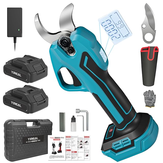 【32mm切断径&山本造園会社監修】Yirealの充電式剪定鋏はさいだい切断径32mmの枝を楽々に切れます。開き口は半開・全開の2段階に調節できる、半開なら小さな開口は作業時間と電力を節約し、全開なら太い枝を簡単に切れます。弊店の電動バサミは山本造園会社監修で植木屋さんが楽に剪定作業するために開発しました。この10年に世界中2万の造園会社に10万以上の植木屋さんが利用しています。