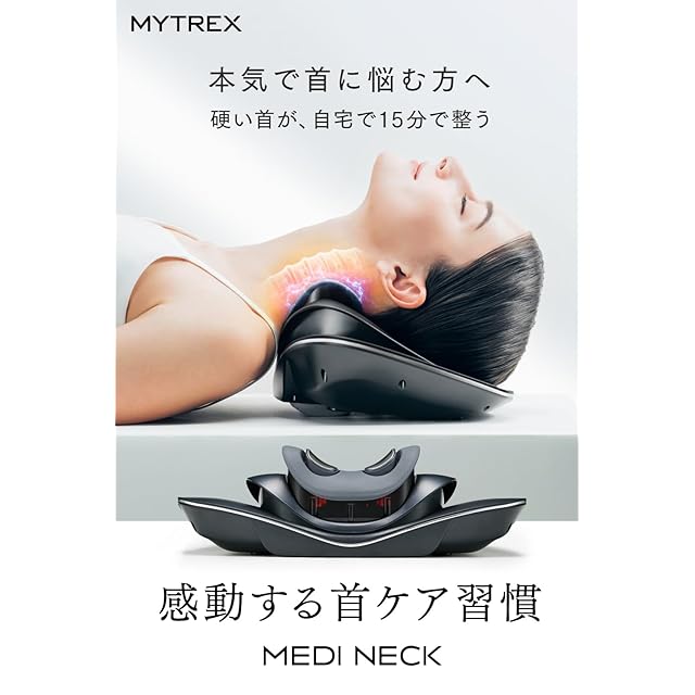 ●商品名: MYTREX MEDI NECK - マイトレックス メディネック -<br> ●品番: MT-MDN24B<br> ●発売元: 株式会社創通メディカル<br> ●製造組立: 中国<br> ●本体寸法: 約450×233×110mm<br> ●重量: 約1.6kg (ACアダプターを除く)<br> ●材質: PC+ABS、シリコン、ステンレス、ナイロン<br> ●最大使用耐荷重: 20kg<br> ●タイマー: 15分自動オフ<br> ●パッケージ内容: 本体×1・専用ACアダプター×1・取扱説明書×1