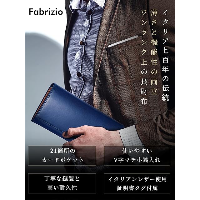 ファブリツィオ 財布 メンズ レディース 長財布 2つ折り 小銭入れ 大容量 薄い ながざいふ ブランド 人気 柔らかい 使いやすい イタリアン レザー 一流の革職人が作る 本革 薄い財布 二つ折り財布 メンズ財布 二つ折り ふたつおり レディース財布 男性 YKKファスナー