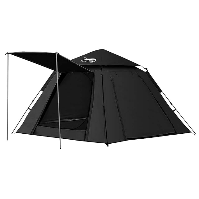 DesertFox テント ワンタッチ 3-4人/4-6人用 4000mm耐水圧 テント 前室あり キャンプテント コンパクト軽軽量 撥水加工素材 自立式 二重層構造 4シーズン 簡単設営 初心者向け UVカット 通気防風防雨 収納袋付き (ブラック,X-Large)