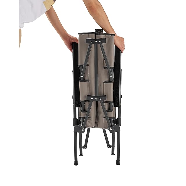 【コンパクト収納】背面フレーム上部を引き上げるだけのワンアクション収束。収納サイズは従来モデルより縦が4.5cm減少してコンパクトになりました(ケース無しの場合)。軽量アルミフレーム採用で持ち運びも簡単です。