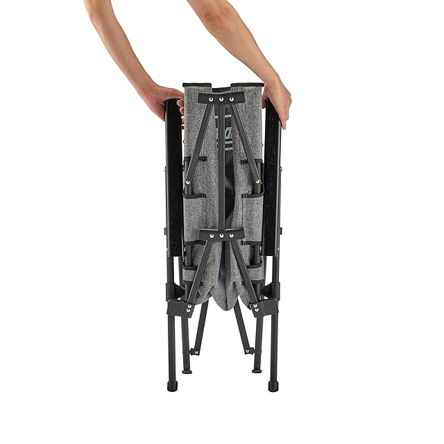 【コンパクト収納】背面フレーム上部を引き上げるだけのワンアクション収束。収納サイズは従来モデルより縦が4.5cm減少してコンパクトになりました(ケース無しの場合)。軽量アルミフレーム採用で持ち運びも簡単です。