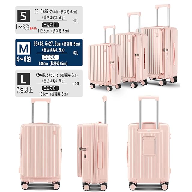 商品名:[Vivcon] スーツケース キャリーケース 多機能 片開き 拡張機能付き ストッパー付き キャリーバッグ 携帯スタンド USBポート付き カップホルダー付き 隠しフック機能 超軽量 耐衝撃 静音 360度回転 大容量 TSAロック搭載 旅行 ビジネス 出張 (ピンク, Sサイズ /45L (1-3泊))