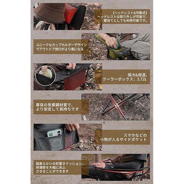 ✅【信頼できる工場&業内トップレベル】30年以上の経験でプロ級スポーツ&アウトドア用品の製造と開発に努め、世界レベル製造工芸あるサプライヤおよびプロバイダで、品質には心配せず、安心にご利用いただけます。【折りたたみチェア/ テーブル/テント/焚き火台/ベッド】◆自主開発の設計◆累計販売台数200万台突破◆ アマゾンランキング第一位獲得!【国際検査基準を導入、日本人の安心な品質管理】全ての製品も国際検査基準による全数検査を行い、品質とサポート体制も完備しております。◆【コンパクト収納、持ち運び便利】リクライニングチェア使用サイズ(約)L152 x W78xH76 cm、座面高:(約)41cm 。チェア使用サイズ(約)90×52×52cm。重量:(約)4.69kg、耐荷重:(約)150kg。フレーム素材:高強度合金鋼で安定性が高い。【内容詳細】:1.肘掛け付き 2.ドリンクホルダー付き 3.サイドポケット付き4.クーラーボックス付き 5.枕付き 6.収納袋付き、背負ったり、車のトランクに収まります。椅子やリクライニングチェアとしても使えます。
