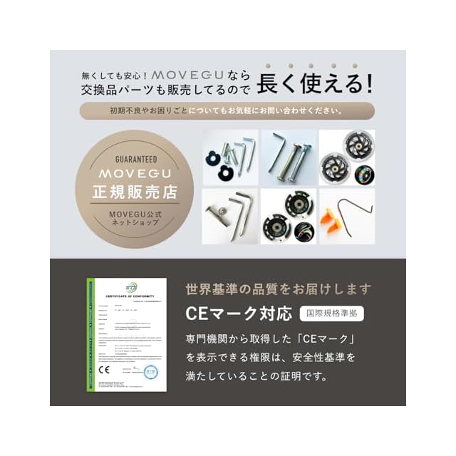 【日本語説明書・動画解説付き】日本メーカーMOVEGUだからこその丁寧なサポートで、購入後も日本人スタッフが迅速に対応します。組み立てや高さ調節、折り畳みもわかりやすい動画解説がついた取扱説明書があるので安心です。