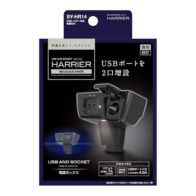 槌屋ヤック(Tsuchiya Yac) 車種専用品 トヨタ 80系 ハリアー 専用 増設ソケット 電源BOX ブラック SY-HR14