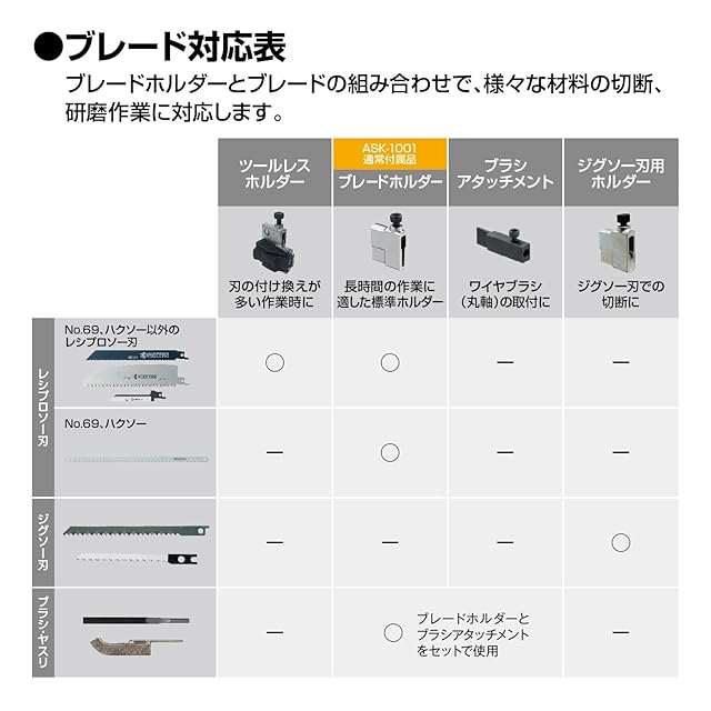 付属品:レシプロソーブレード(No.68)×1・レシプロソーブレード(No.79)×1・六角棒レンチ(3mm・本体収納)×1・レシプロソー用ブレードホルダー(本体取付)×1