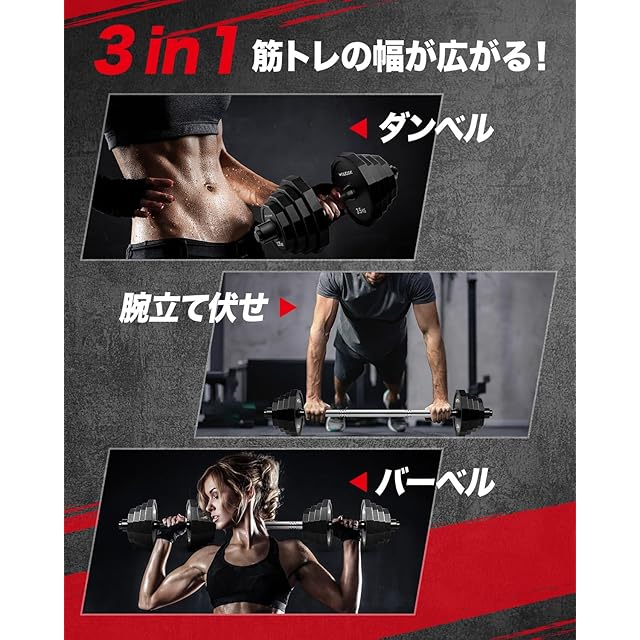 ダンベル 可変式 【ステンレス鋼製10年以上持たせ・3in1自主開発12角形】 10kg 20kg 30kg 40kg 2個セット 筋トレ器具 【 (意匠権取得) 意匠登録1641845】 バーベルにもなる ダンベルセット バーベル 無臭素材 静音 錆びない 滑り止め 筋力トレーニング 腕立て伏せ ウェイトトレーニン ダイエット 床傷防止 トレーニング 健康器具 ホームジム ダイエット エクササイズ 10KG*2セット 合計20KG ブラック