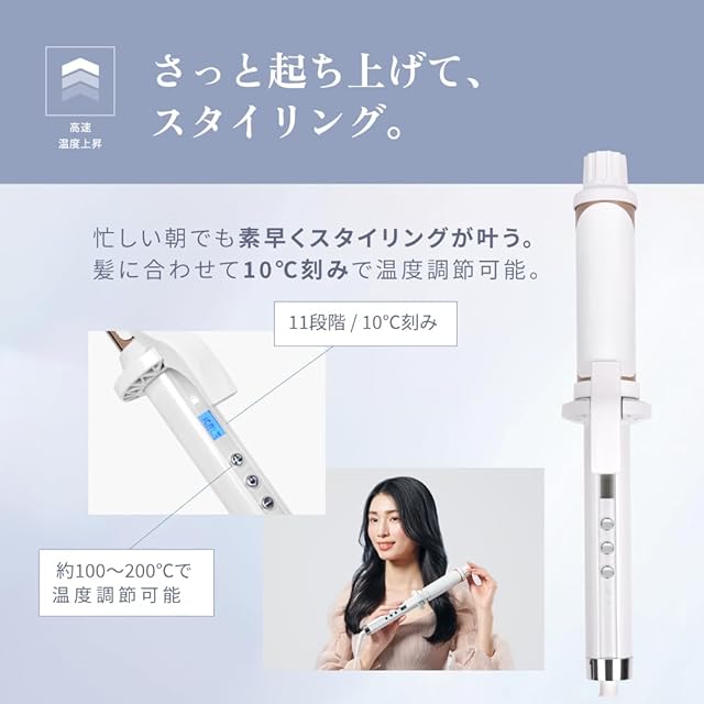 電源を入れて55秒で約150℃まで温度が上昇!※1 使用中も常に温度キープし、ムラなく均一な温度で使用できるため、長時間崩れにくいスタイリングを可能にしました。 ※1 KC26N 使用時
