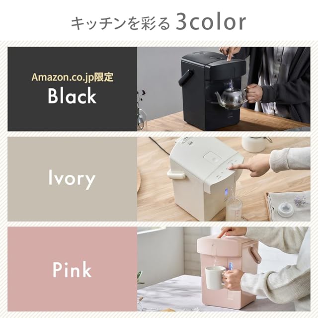 ◆安全機能◆①自動ロック:給湯後10秒間給湯ボタンを押さなかった場合、自動でロックされます。誤って給湯ボタンを押してもお湯がでないので、お子様のいるご家庭でも安心してお使いいただけます。②空だき防止機能:容器内に水が入っていない状態を検知すると自動的に加熱を停止します。