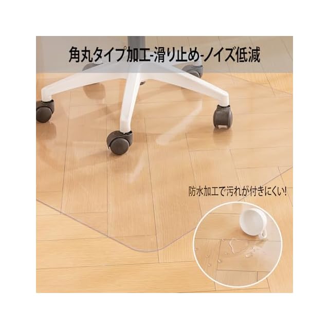 透明 床保護マット:四隅は円角加工を施し、より安全です。敷く時はエンボス加工された面を上、ツルツルした面を下にしてください。裏面が床にピッタリと密着してズレにくくなります。