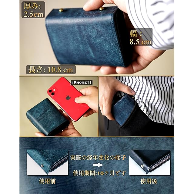 商品名:[IrideScent] 二つ折り財布 メンズ 2つ折り 箱型の小銭入れ イタリアン レザー プエブロ ミニ財布 コンパクト 小さい財布 日本製 二つ折り 箱状です 牛革 大容量 レディース PUEBLO (Navy)