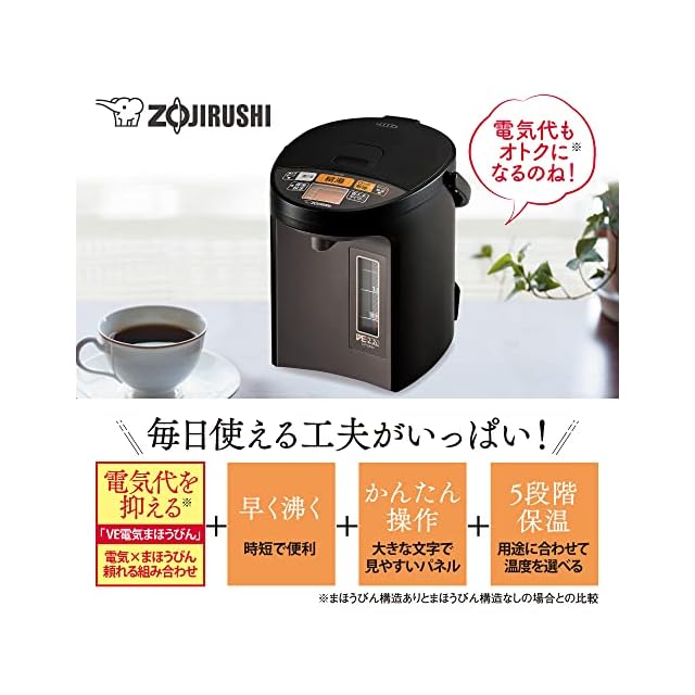商品名:象印マホービン 電気ポット 2.2L 優湯生 省エネタイプ VE電気まほうびん 5段階温度設定 ブラウン CV-GA22-TA