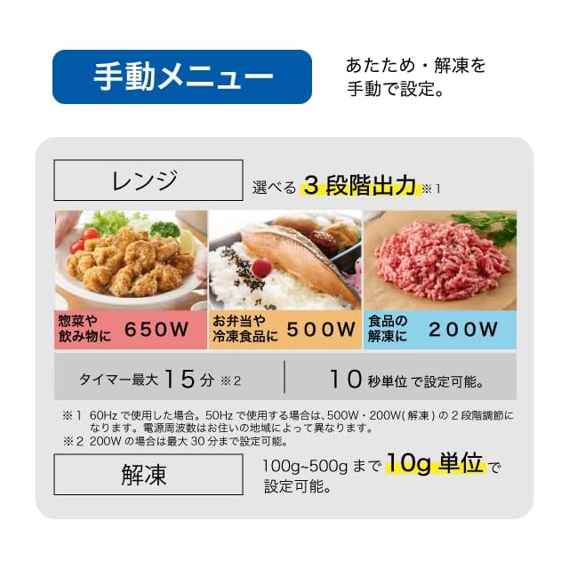 【オートメニュー】レンジだけで調理できる13種類のオートメニュー付き。コンビニのお弁当あたためや炒めもの(水分少なめ)も、簡単においしく仕上がります。