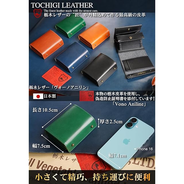 本製品は、日本の栃木レザーを使用して製造された小型二つ折り財布です。形状はボックス型で、内部には9つのカードスロット、1つの紙幣収納スペース、1つの箱型小銭入れがあり、同時に10枚のカード、15枚の紙幣、15枚のコインを収納できます。製品の特徴は次のとおりです: 1、本物の日本の栃木レザーを使用しており、レザーの防偽証明書が付属しています。 2、コンパクトなサイズで、持ち運びが便利です。片手で握ることができ、ポケットにすぐに入ります。 3、ボックスタイプの構造で、収納後に膨らむことはありません。