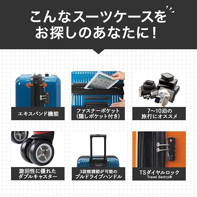 商品名:[エース] スーツケース 双輪キャスター キャリーケース クレスタ ブルー Lサイズ 83/93L