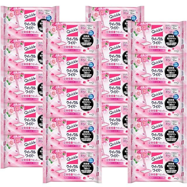 商品名:クイックル 【ケース販売】ワイパー フロア用掃除道具 立体吸着ウエットシート ローズの香り 16枚 ×20個